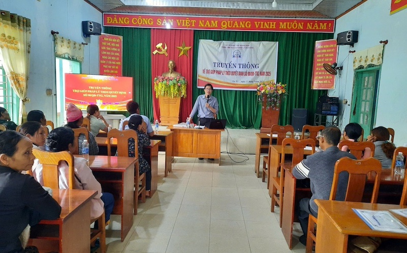 Từ ngày 11-15/5/2025, Trung tâm Trợ giúp pháp lý (TGPL) tỉnh Quảng Nam tổ chức truyền thông về TGPL, nói chuyện chuyên đề pháp luật, phát chiếu phóng sự vụ việc TGPL theo Quyết định số 90/QĐ-TTg ngày 18/01/2022 của Thủ tướng Chính phủ phê duyệt Chương trình mục tiêu quốc gia giảm nghèo bền vững giai đoạn 2021-2025 trên địa bàn huyện Nam Giang năm 2025.