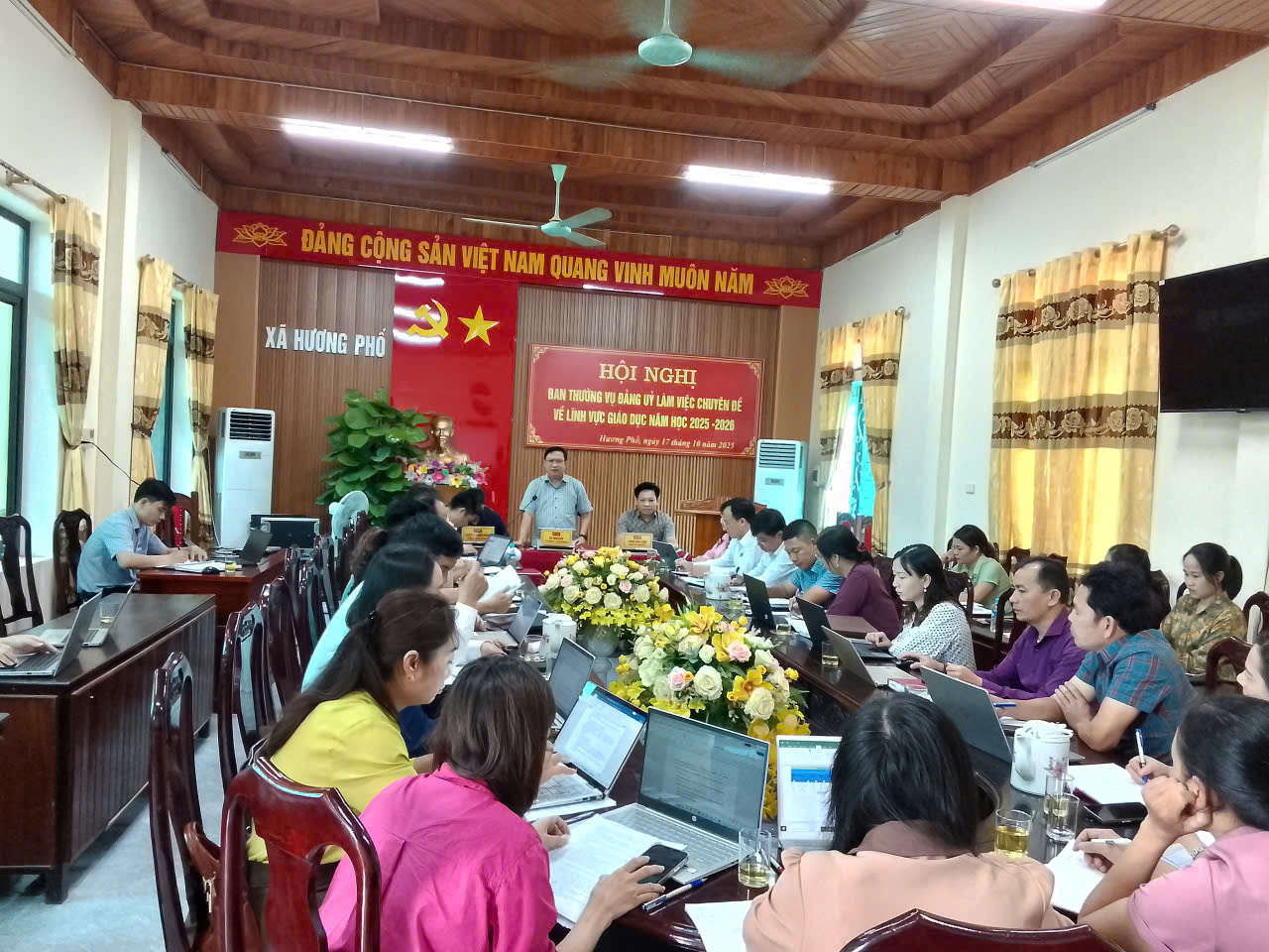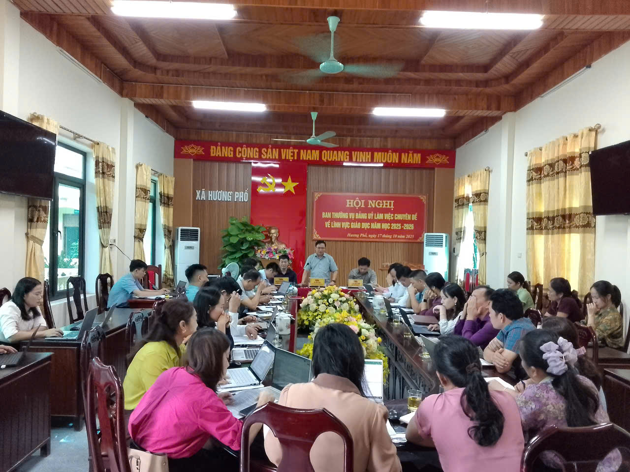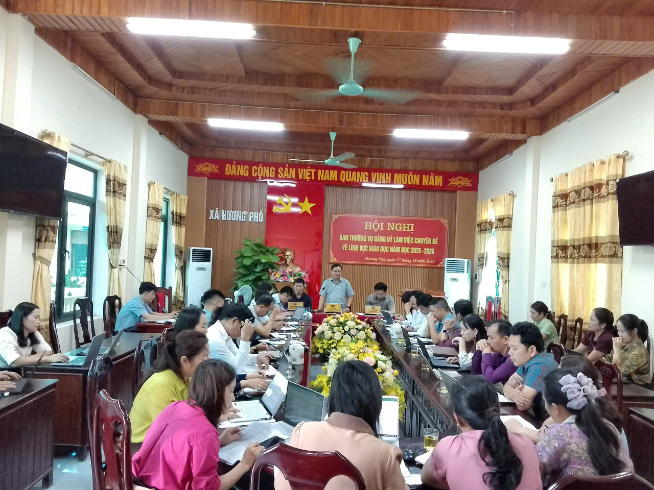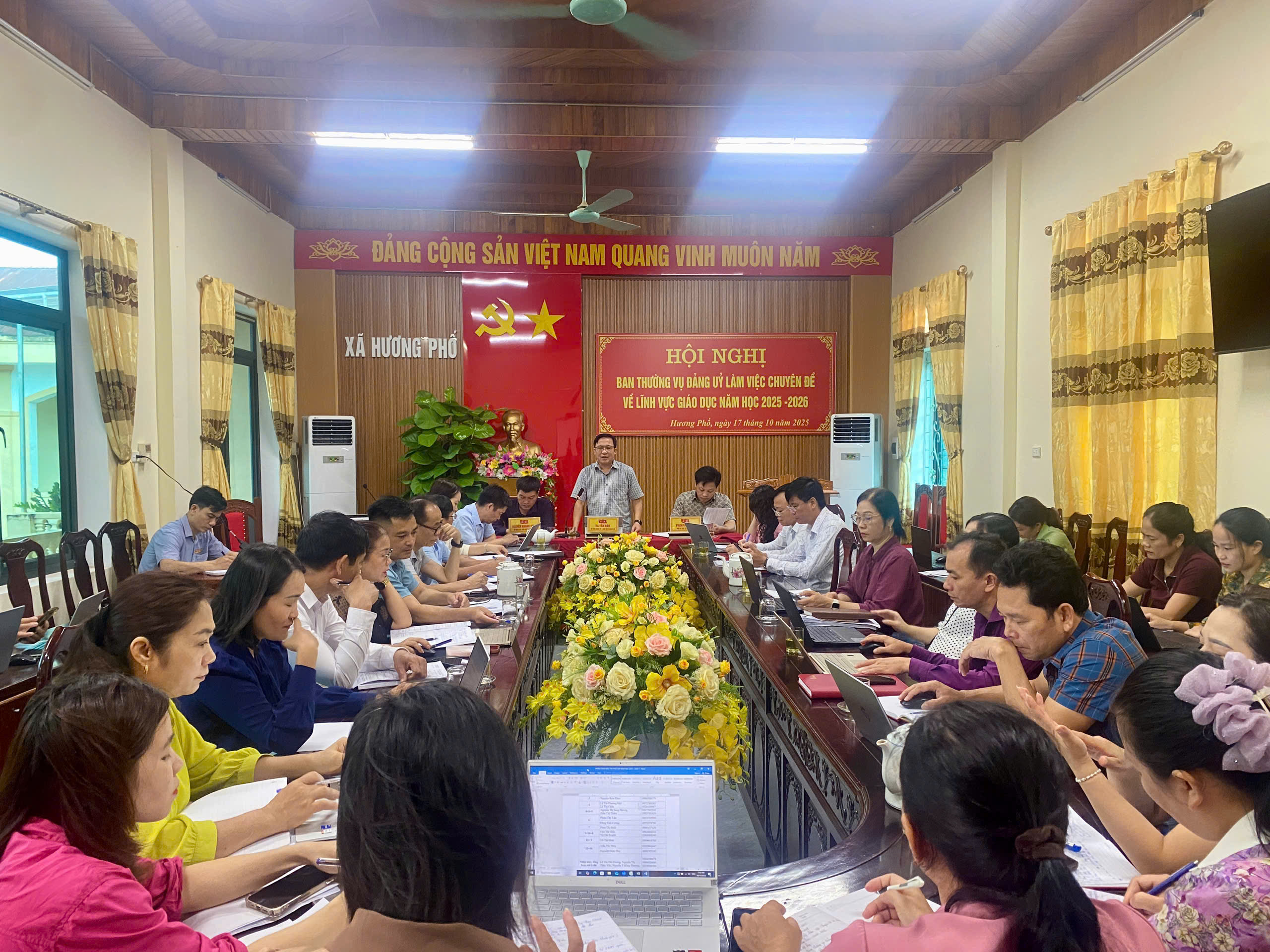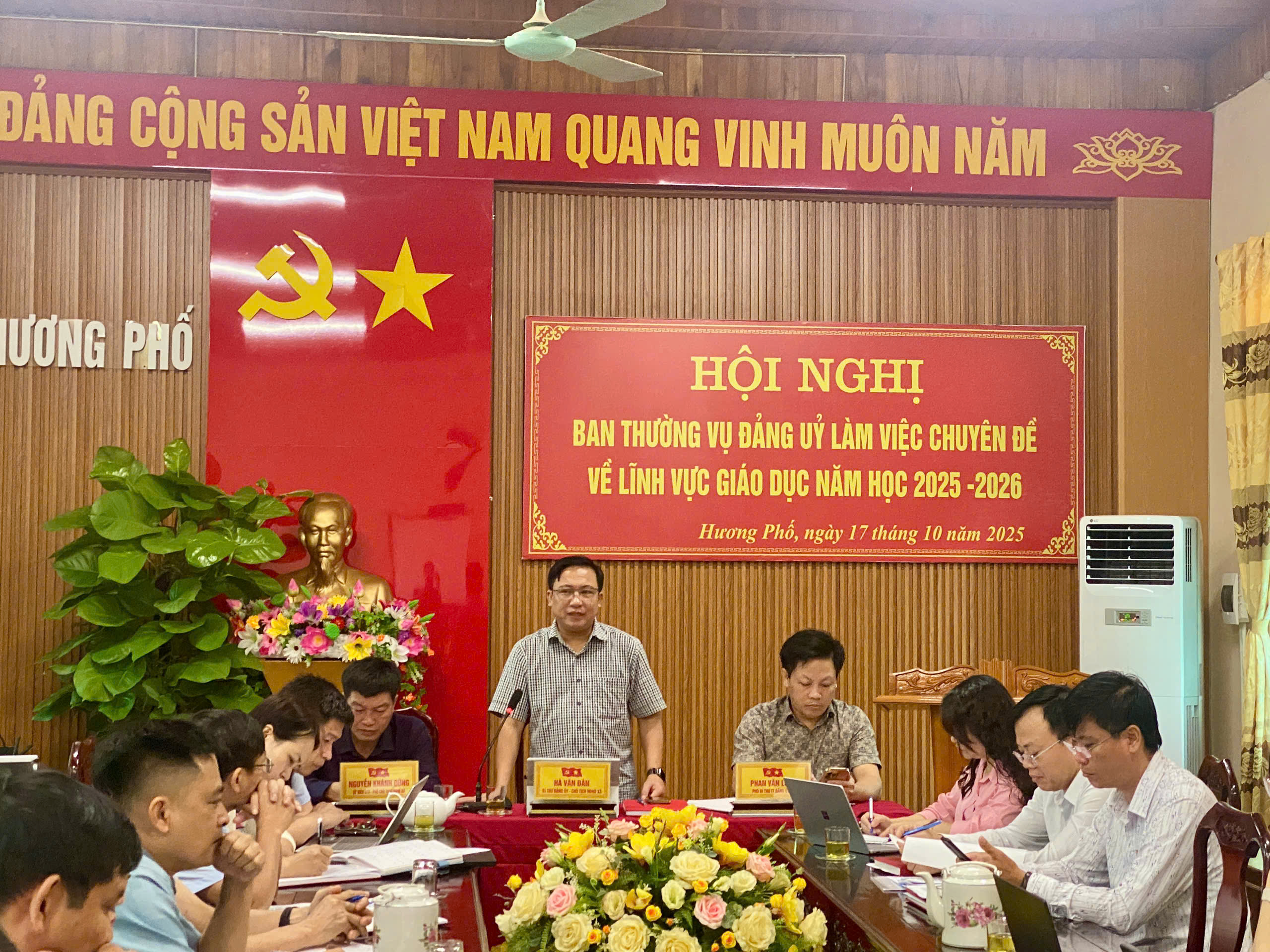 Sáng ngày 17 tháng 10 năm 2025, tại Hội trường UBND xã Hương Phố, Ban Thường vụ Đảng ủy xã tổ chức Hội nghị làm việc chuyên đề về lĩnh vực giáo dục năm học 2025 – 2026.