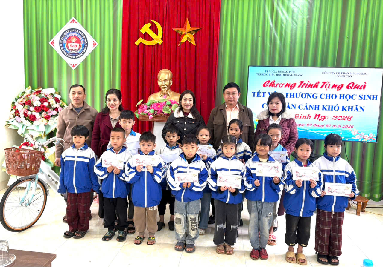 Nhân dịp Tết Nguyên đán cổ truyền của dân tộc, Công ty Cổ phần mía đường Sông Con đã trao quà cho các em học sinh có hoàn cảnh khó khăn tại Trường Tiểu học Hương Giang.