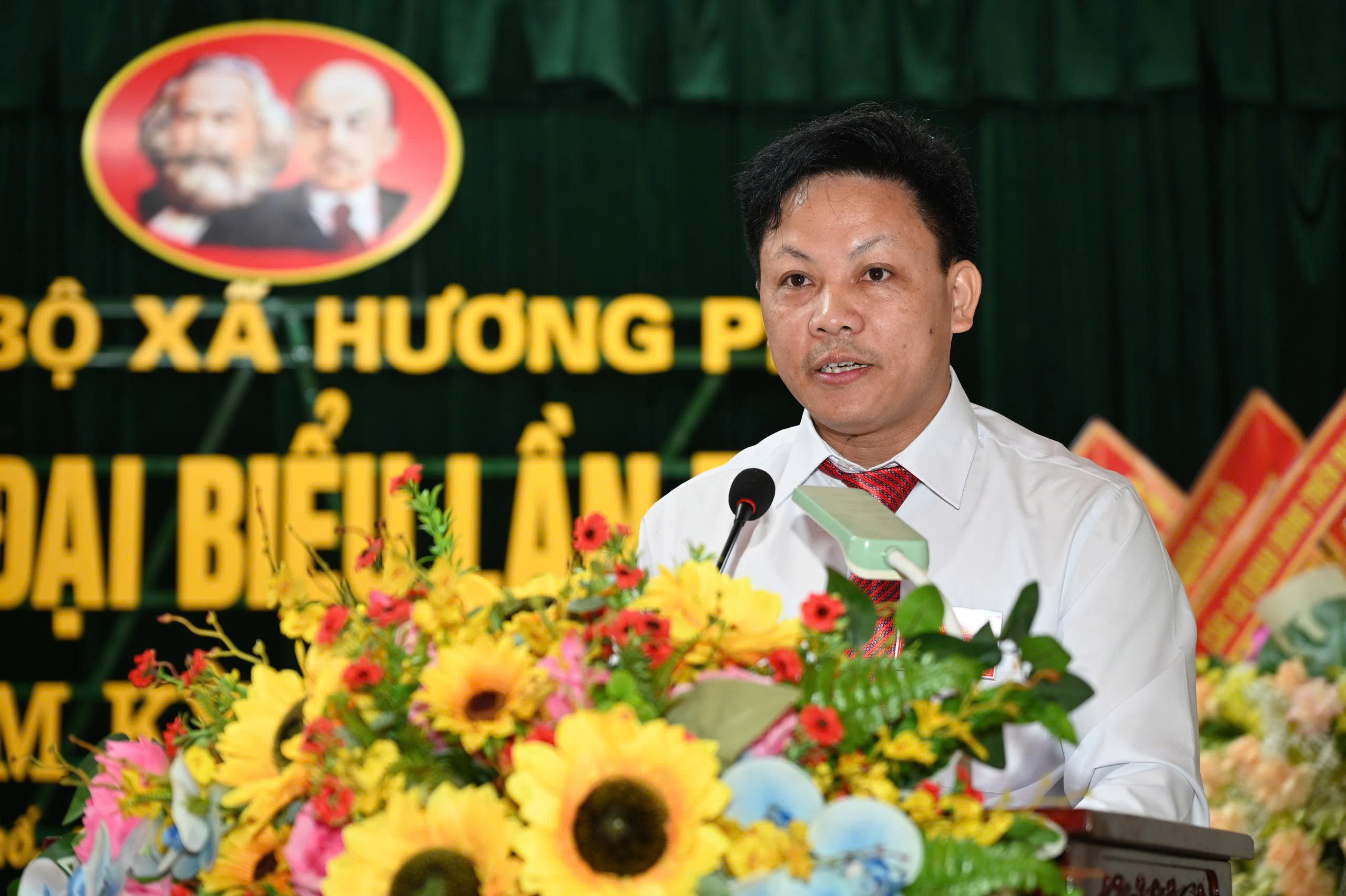 Đồng chí Hà Văn Đàn, Bí thư Đảng ủy xã báo cáo chính trị đại hội