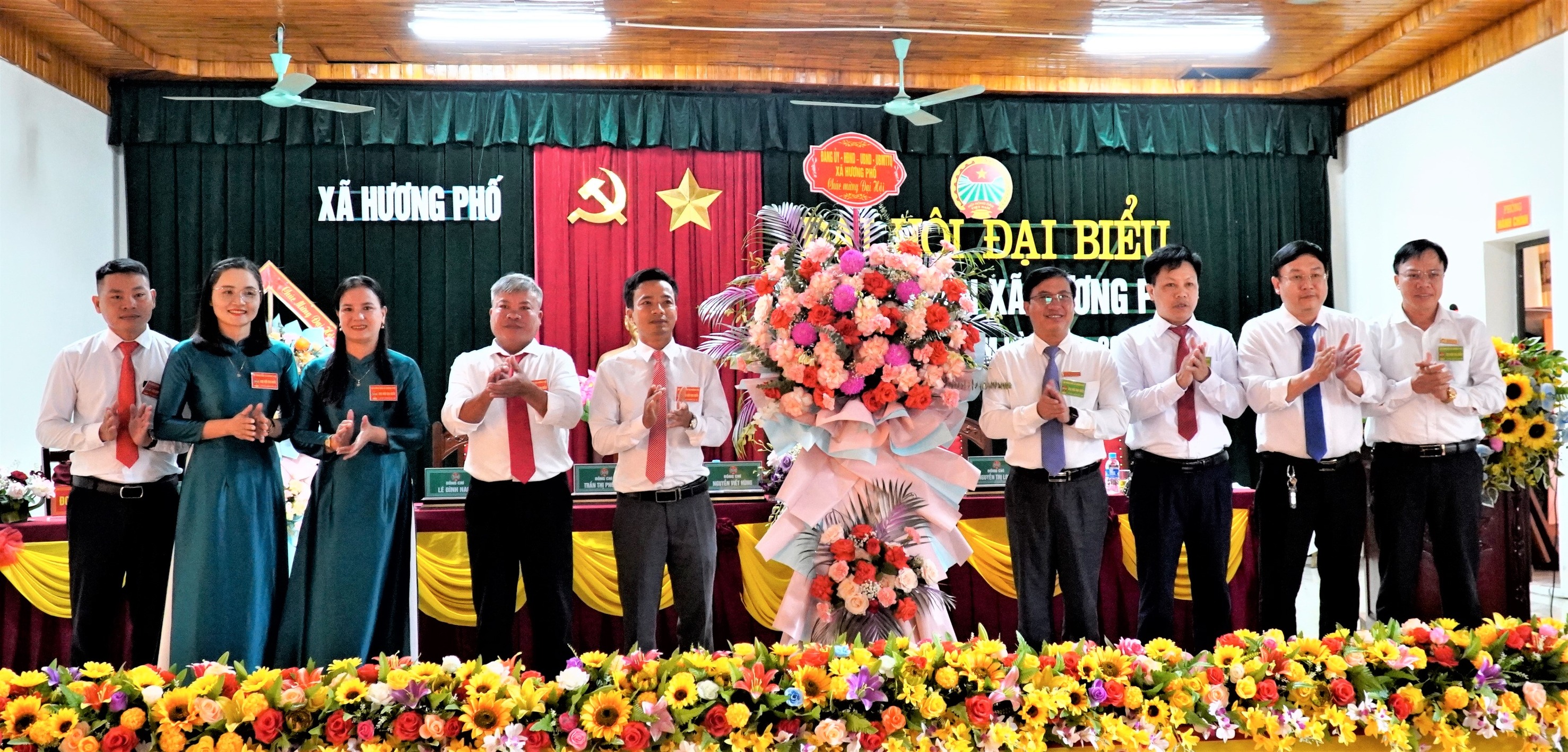 Lãnh đạo xã tặng hoa chúc mừng Đại hội