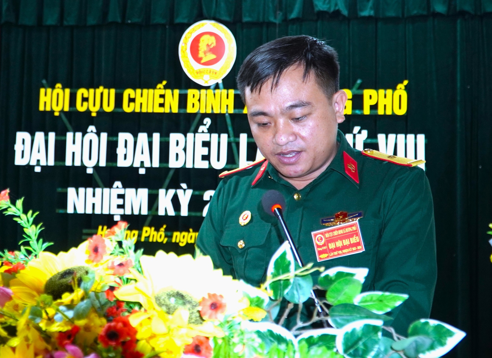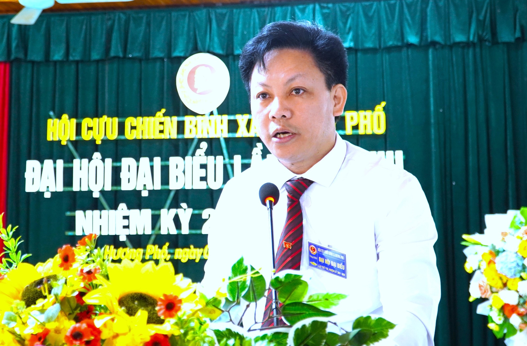 Phát biểu chỉ đạo Đại hội, đồng chí Phan Văn Long – Phó Bí thư Thường trực Đảng ủy xã Hương Phố ghi nhận, biểu dương những kết quả đạt được của Hội CCB xã trong nhiệm kỳ qua; đồng thời đề nghị Hội tiếp tục đổi mới nội dung, nâng cao chất lượng công tác chính trị tư tưởng, giữ vững bản lĩnh, kiên định mục tiêu lý tưởng của Đảng; đẩy mạnh học tập và làm theo tư tưởng, đạo đức, phong cách Hồ Chí Minh; phát huy tinh thần tự lực, tự cường, tích cực tham gia các phong trào thi đua, tăng cường vai trò giám sát, phản biện xã hội, góp phần xây dựng quê hương Hương Phố ngày càng giàu đẹp, văn minh.