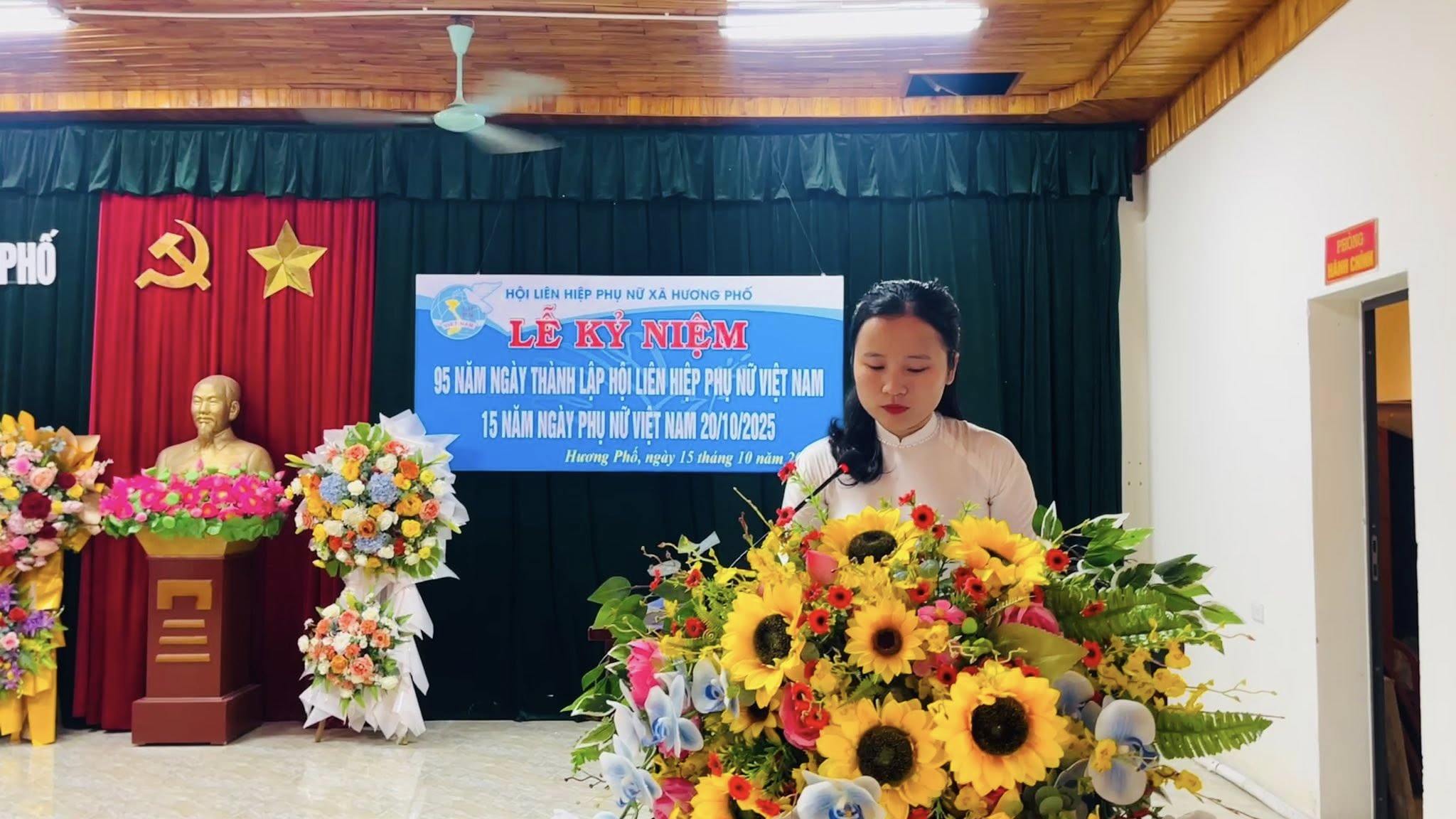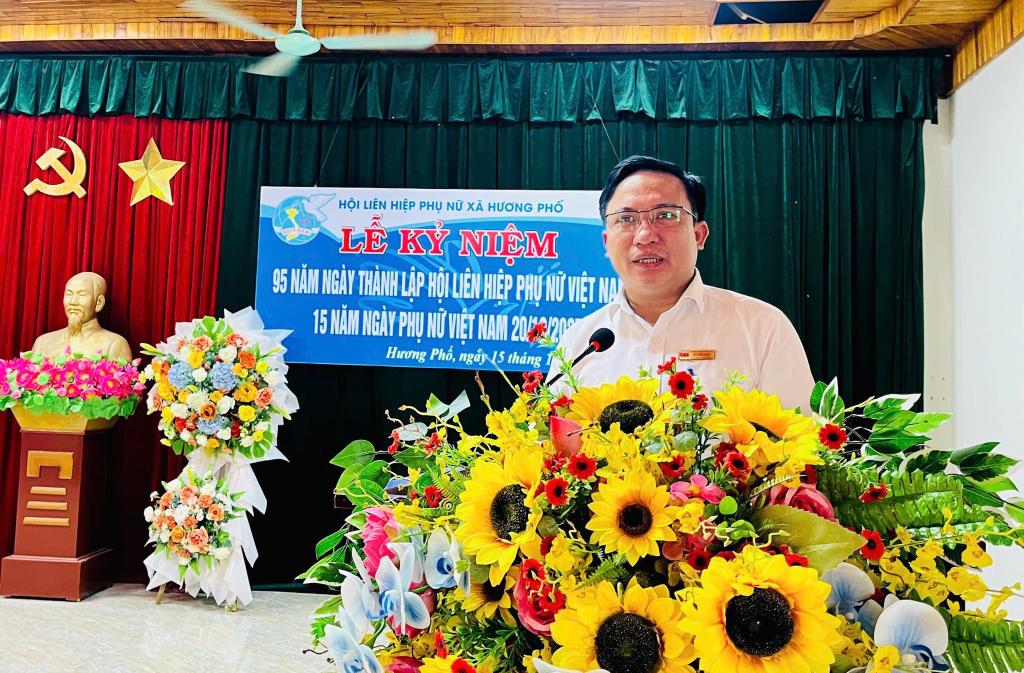 Phát biểu tại buổi lễ, đồng chí Hà Văn Đàn – Bí thư Đảng ủy, Chủ tịch HĐND xã biểu dương, ghi nhận và đánh giá cao những đóng góp của Hội Liên hiệp Phụ nữ xã Hương Phố trong thời gian qua. Đồng chí nhấn mạnh, Hội Phụ nữ xã đã phát huy tốt vai trò nòng cốt trong các phong trào thi đua yêu nước, tích cực thực hiện các cuộc vận động, đặc biệt là các phong trào “Phụ nữ tích cực học tập, lao động sáng tạo, xây dựng gia đình hạnh phúc”, “Xây dựng nông thôn mới nâng cao”. Đồng chí mong muốn trong thời gian tới, cán bộ, hội viên phụ nữ toàn xã tiếp tục đoàn kết, sáng tạo, nêu cao tinh thần trách nhiệm, góp phần xây dựng quê hương Hương Phố ngày càng giàu đẹp, văn minh.