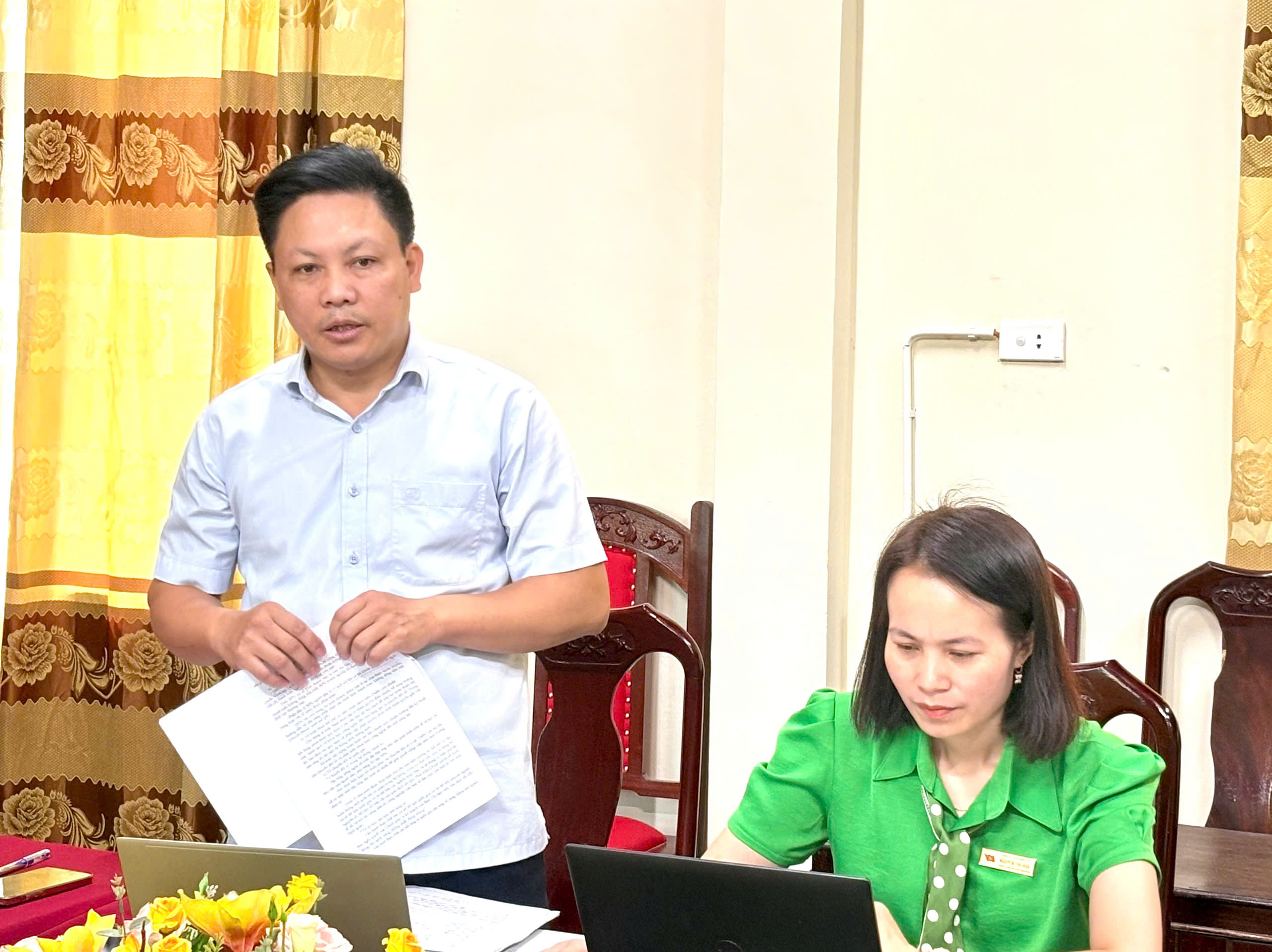 Đồng chí Hà Văn Đàn – Bí thư Đảng ủy, Chủ tịch HĐND xã, Trưởng Ban Chỉ đạo về phát triển khoa học, công nghệ, đổi mới sáng tạo và chuyển đổi số xã chủ trì cuộc họp