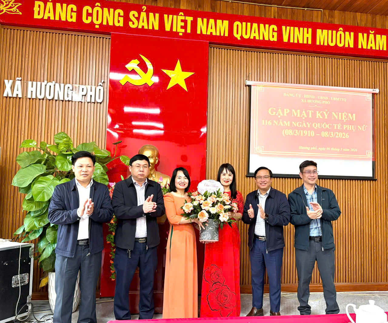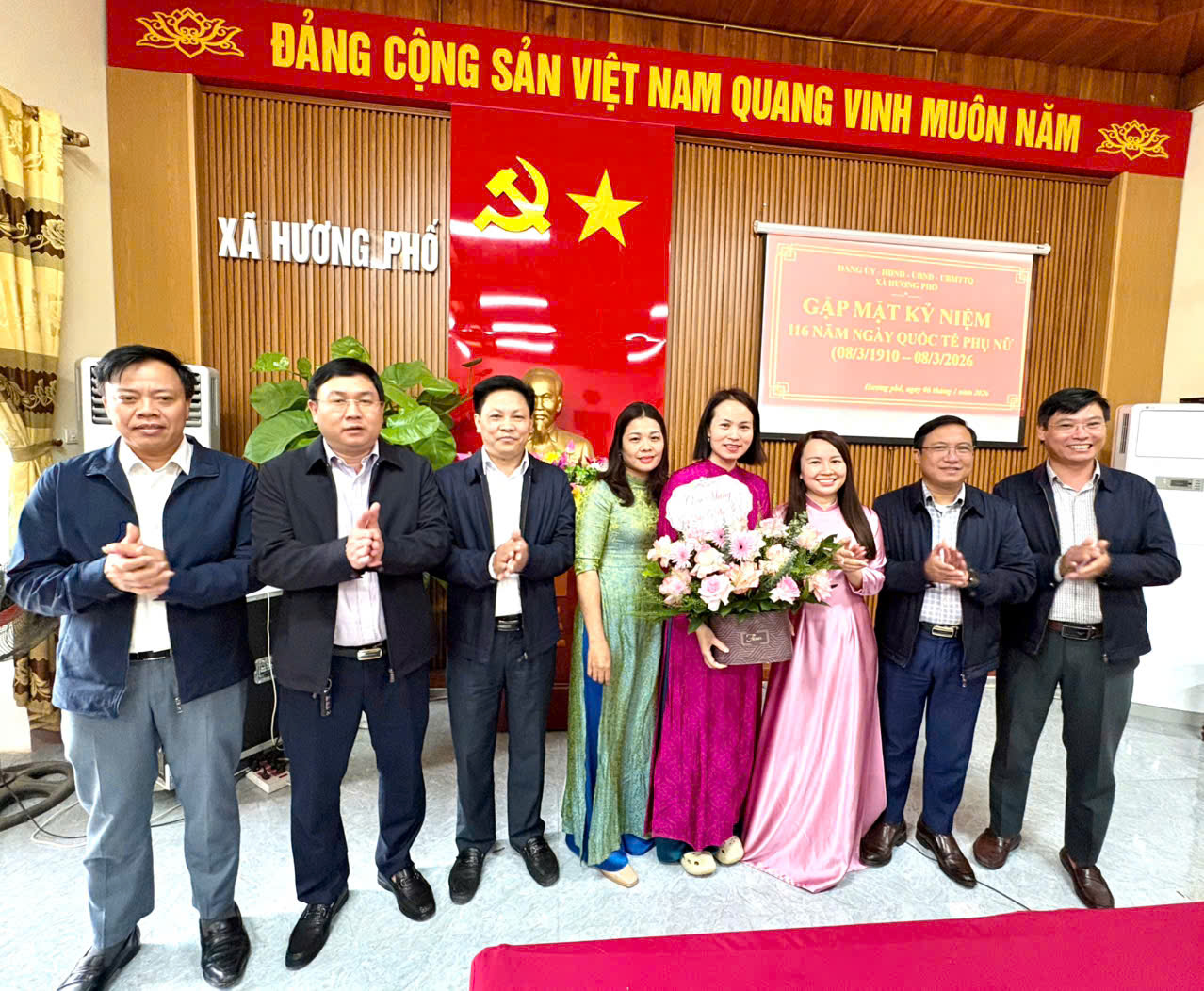Nhân dịp này, lãnh đạo xã Hương Phố đã tặng hoa chúc mừng các nữ cán bộ, công chức, viên chức, thể hiện sự quan tâm, động viên và trân trọng đối với những đóng góp của chị em phụ nữ.