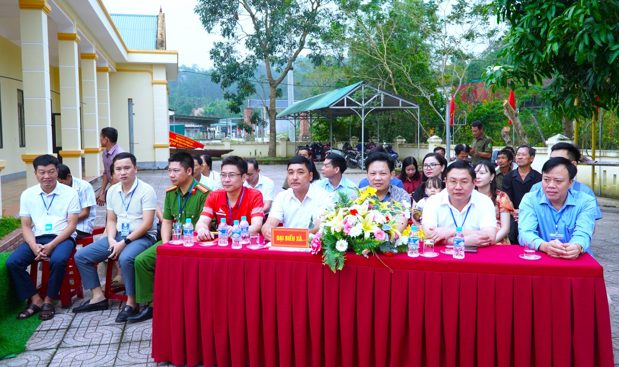 Lãnh đạo Đảng ủy, HĐND và UBND xã tặng cờ lưu niệm cho các đội bóng