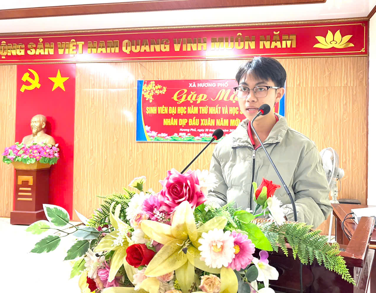 Phát biểu tại buổi gặp mặt, đồng chí Nguyễn Xuân Quyền – Phó Bí thư Đảng ủy, Chủ tịch UBND xã đã ghi nhận, biểu dương và chúc mừng những thành tích mà các em học sinh, sinh viên đạt được. Đồng chí nhấn mạnh, đây là năm đầu tiên cấp ủy, chính quyền xã Hương Phố tổ chức gặp mặt, tuyên dương học sinh, sinh viên sau khi thực hiện việc sắp xếp, sáp nhập đơn vị hành chính và triển khai mô hình chính quyền địa phương hai cấp, vì vậy chương trình có ý nghĩa đặc biệt quan trọng. Hoạt động không chỉ thể hiện sự quan tâm, chăm lo của địa phương đối với thế hệ trẻ mà còn là dịp để tôn vinh, khích lệ, tạo động lực để các em tiếp tục phấn đấu vươn lên trong học tập và cuộc sống.