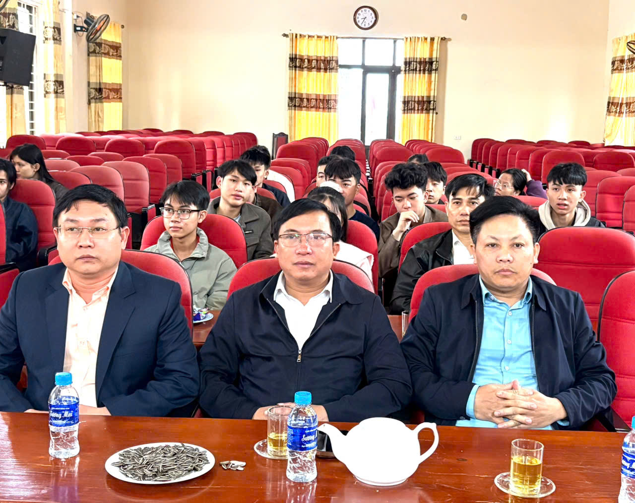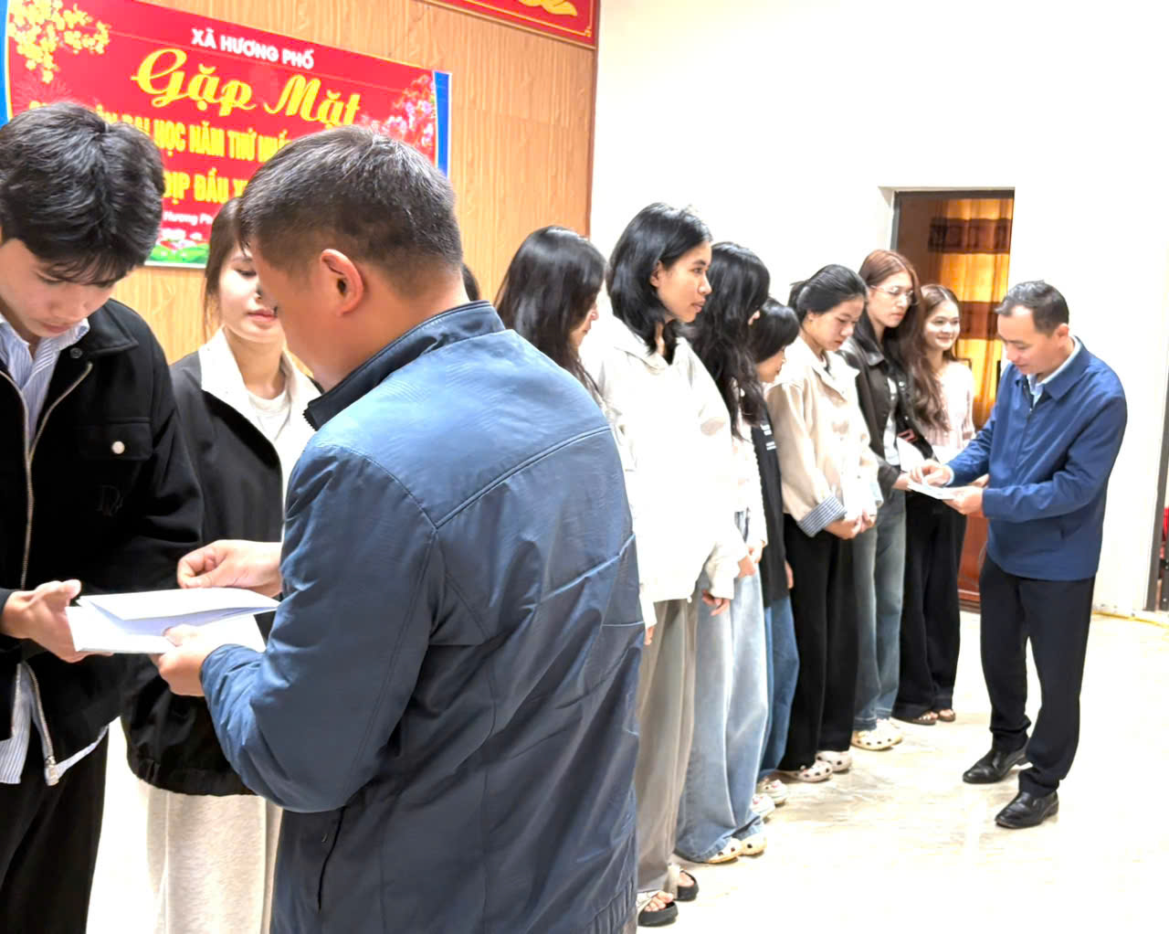 Tham dự buổi gặp mặt có đồng chí Hà Văn Đàn – Bí thư Đảng ủy, Chủ tịch HĐND xã; đồng chí Phan Văn Long – Phó Bí thư Thường trực Đảng ủy; đồng chí Nguyễn Xuân Quyền – Phó Bí thư Đảng ủy, Chủ tịch UBND xã; cùng các đồng chí lãnh đạo Ủy ban MTTQ xã, đại diện các ban, ngành, Ban Giám hiệu các trường học, trưởng thôn trên địa bàn và đặc biệt là sự có mặt của 60 em sinh viên năm thứ nhất cùng các em học sinh đạt giải học sinh giỏi cấp tỉnh năm học 2025–2026.