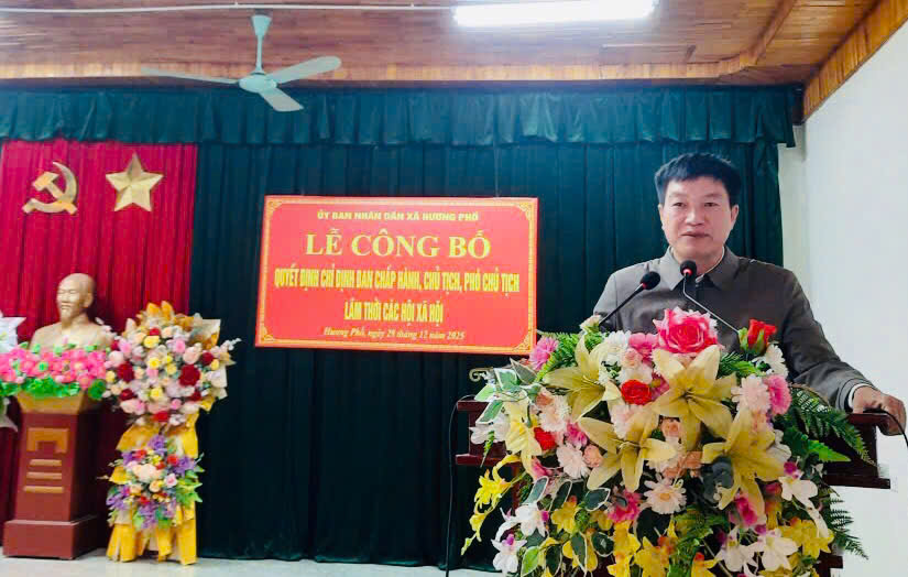 Sáng 29/12/2025, được sự đồng ý của Thường trực Đảng ủy xã, UBND xã Hương Phố tổ chức Lễ công bố Quyết định chỉ định Ban chấp hành, Chủ tịch, Phó chủ tịch lâm thời các Hội xã hội được Đảng, Nhà nước giao nhiệm vụ.