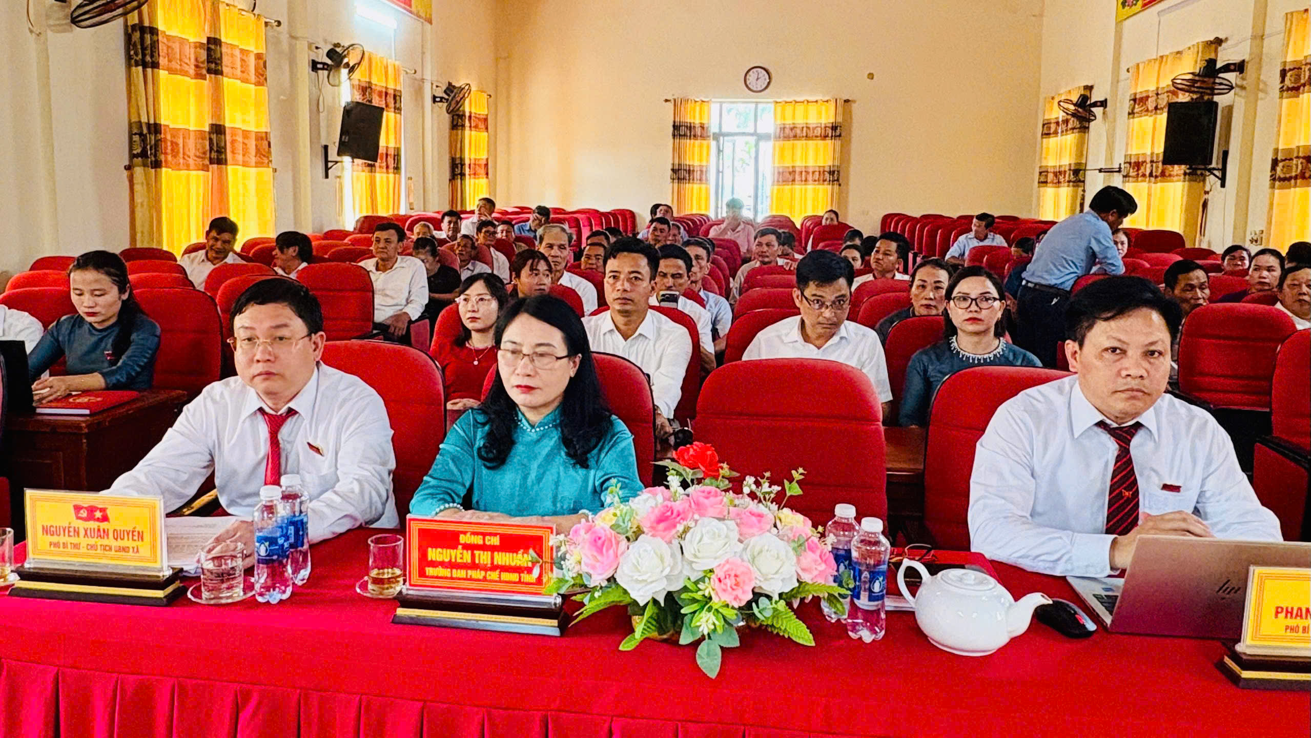 Với tinh thần dân chủ, khách quan, trách nhiệm, kỳ họp đã bầu các chức danh chủ chốt của HĐND xã. Theo đó, ông Hà Văn Đàn – Bí thư Đảng ủy được bầu giữ chức Chủ tịch HĐND xã; ông Lê Thanh Bình giữ chức Phó Chủ tịch HĐND xã; bà Nguyễn Thị Huế – Ủy viên Ban Thường vụ Đảng ủy, Trưởng ban Xây dựng Đảng giữ chức Trưởng ban Văn hóa – Xã hội; bà Lê Thị Thanh Huyền – Ủy viên Ban Thường vụ Đảng ủy, Chủ nhiệm UBKT Đảng ủy giữ chức Trưởng ban Kinh tế – Ngân sách HĐND xã.