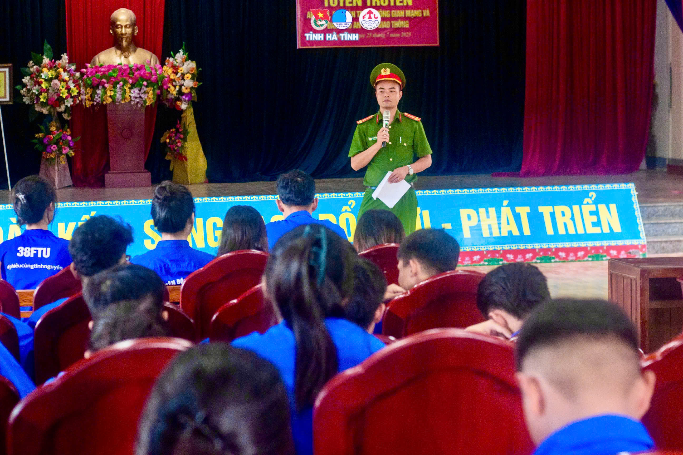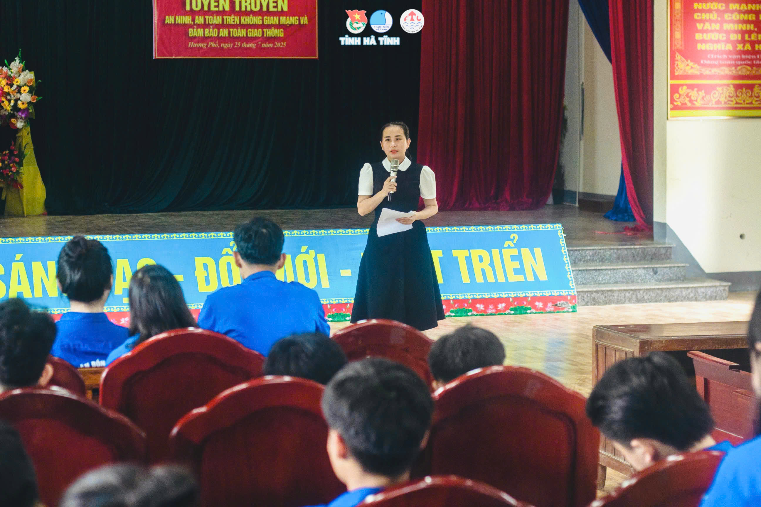 Chiều ngày 25/7/2025, tại Nhà văn hóa xã Hương Phố, UBND xã đã phối hợp với Đoàn Thanh niên xã, Công an xã và Đội tình nguyện đồng hương Hà Tĩnh – Trường Đại học Ngoại thương Hà Nội tổ chức buổi tuyên truyền pháp luật cho đoàn viên, học sinh với chủ đề: “An toàn trên không gian mạng và an toàn khi tham gia giao thông”.