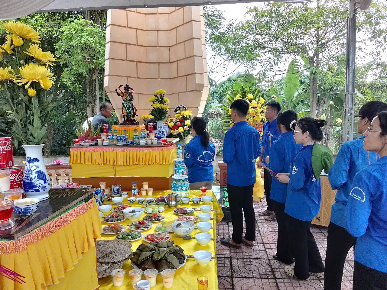 Đoàn xã Hương Phố phối hợp tổ chức dâng hương và chuẩn bị lễ vật tại Đài Tưởng niệm xã Hương Thủy – thể hiện đạo lý “Uống nước nhớ nguồn”.