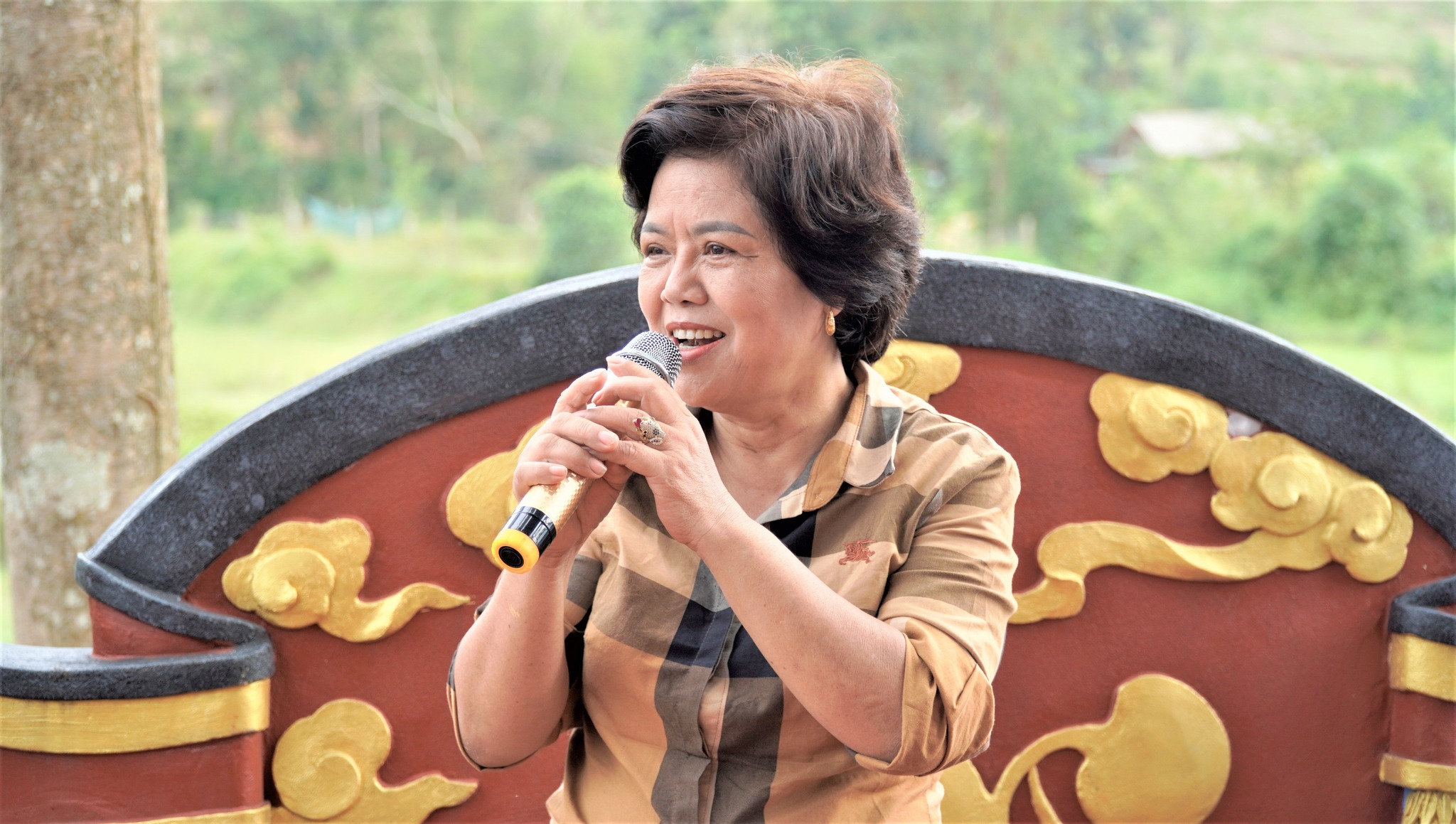 Chị Nguyễn Thị Thanh Toàn- người khởi xướng kêu gọi tôn tạo đền phát biểu