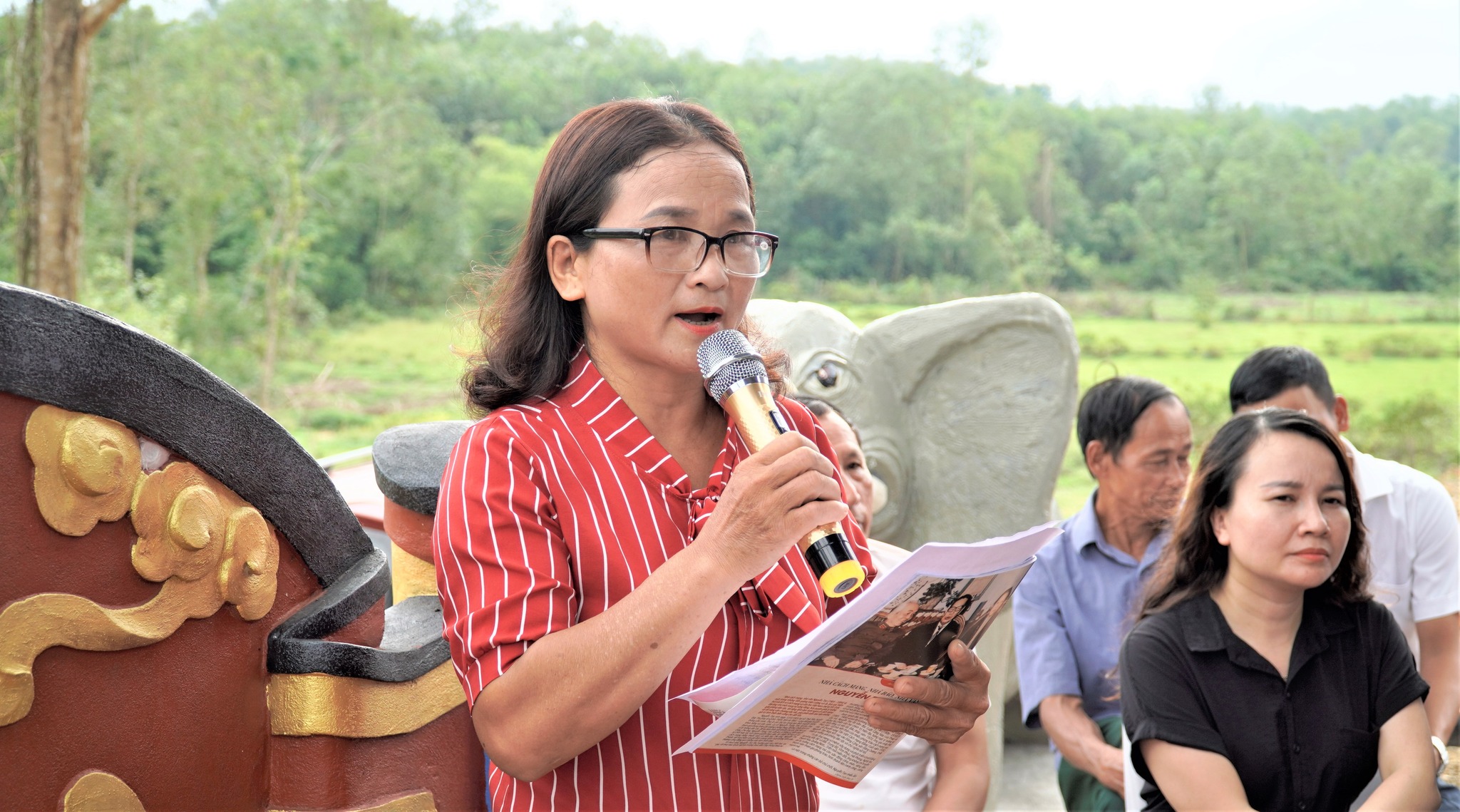 Bà Phạm Thị Minh Liên, Bí thư Chi bộ, Trưởng Ban công tác Mặt trận thôn Thạch Thượng, báo cáo khái quát lịch sử của đền